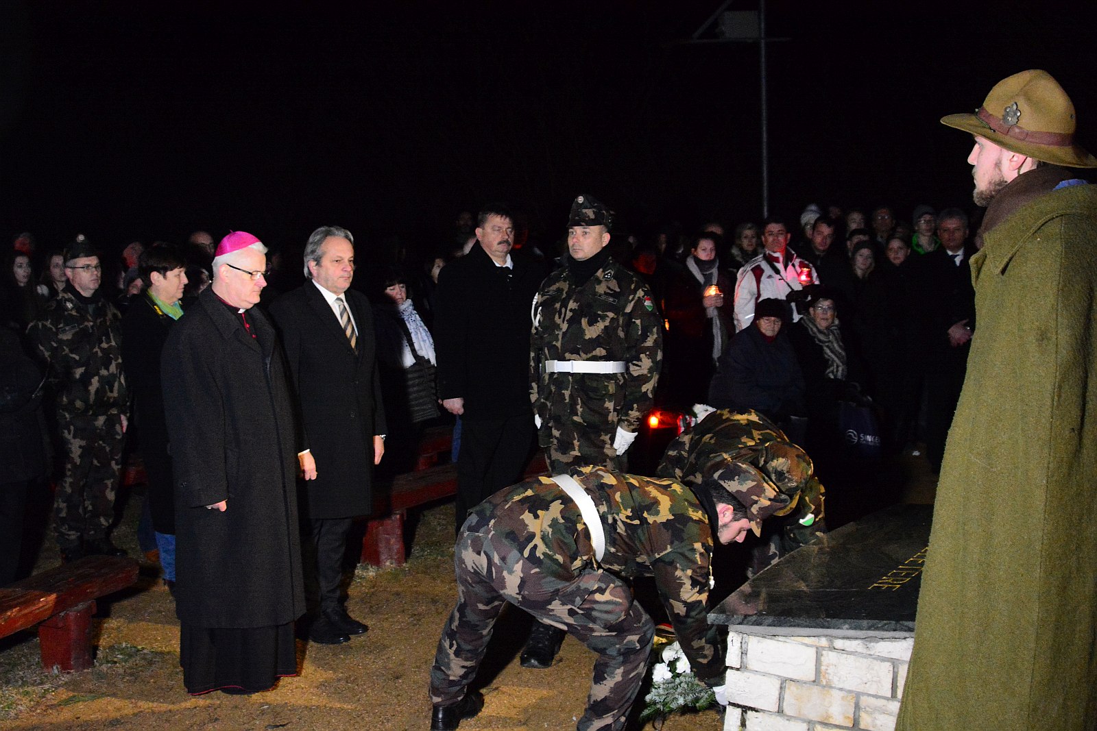 „Azt tesszük, ami kötelességünk. Emlékezünk és fejet hajtunk. Nemcsak a szenvedésre, nemcsak a borzalmakra emlékezünk, hanem mindezek mögött látjuk azt, amiből e szenvedéshez erőt merítettek, a haza szeretetét, a magyarság megtartó tudatát, a családok, az otthon maradtak szeretetét, az áldozatvállalás készségét. Nem akarjuk megengedni, hogy sodródjunk a világ mindenféle kósza szelétől, nem akarunk, ki tudja milyen szándékok játékszerévé válni, hanem az ősök példáját követve akarjuk, - mint ők - a hazát szeretni, szeretni a ránk bízott családot, megőrizni azt, ami bennünk magyar.” – mondta emlékező imádságos gondolataiban Spányi Antal, megyés püspök.