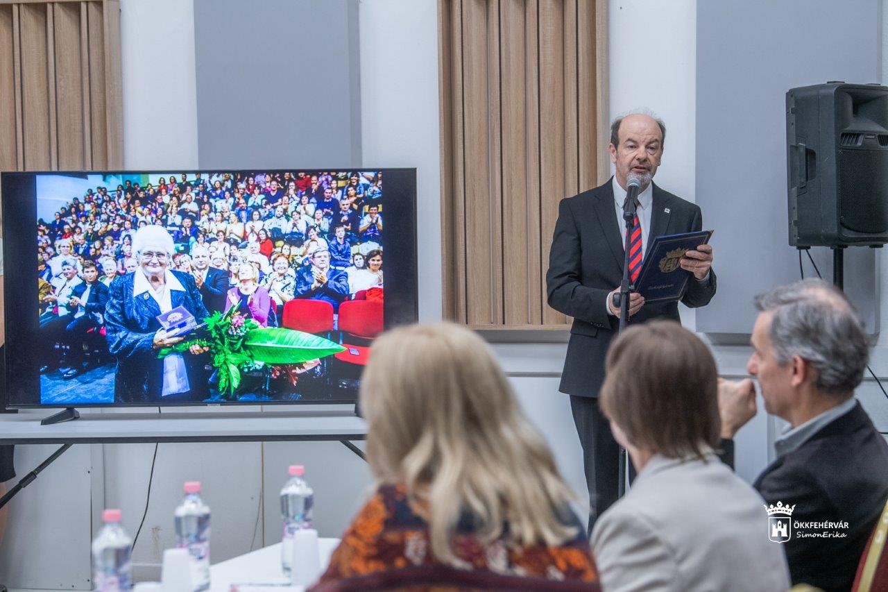 „Városunk sokat köszönhet a mindenkor aktív, tevékeny pedagógusnak. Ötlete és szervezőmunkája nyomán 2015 óta advent első vasárnapján felcsendül a Kisangyalok kara, ahol félezer fehérvári diák énekel együtt a Városház téren. Emellett fontos volt számára az elődök által létrehozott értékek őrzése: az 1938-ban alakult Székesfehérvári Kamarakórus történetét kutatta.” Székesfehérvár alpolgármestere hozzátette, hogy a kodályi-értékek, a kóruséneklés hagyományai a jelen aktív zenepedagógusainak köszönhetően élnek tovább, és a Kisangyalok kara továbbra is hirdeti a közös éneklés örömét, őrzi Hartyáni Mária emlékét.