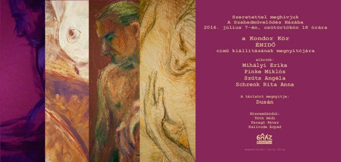 ÉNIDÕ címmel nyílik kiállítás július 7-én, csütörtökön 18 órakor A Szabadművelődés Házában. A tárlat a Kondor Kör alkotásaiból áll: Mihályi Erika, Pinke Miklós, Szűts Angéla és Schrenk Rita Anna munkáit tekintheti meg a közönség. Mindhárom művésznő mestere Pinke Miklós volt a Képzőművészeti Körben, 2015 szeptemberétől ők vették át tőle a szakkör vezetését.