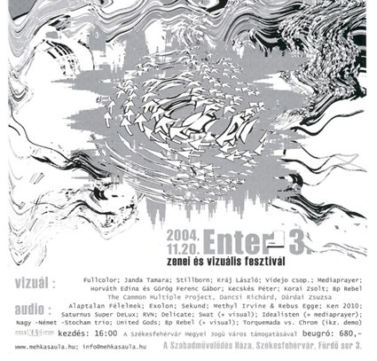 Ez a harmadik Enter fesztivál lesz a Méhkasaula szervezésében -mondja Fenyvesi Máté az egyik szervező: ez egy zenei és vizuális fesztivál, ami lényegében egy elektronikus művészeti fesztivál. Olyan emberek mutatkoznak be, akik otthon számítógépen hozzák létre a zenéiket - innen az Enter elnevezés. Van egy olyan felfogás ugyanis, ami nem tekinti igazán értéknek a dolgot, mert ugye a színpadon is csak a számítógéppel dolgozik az előadó.