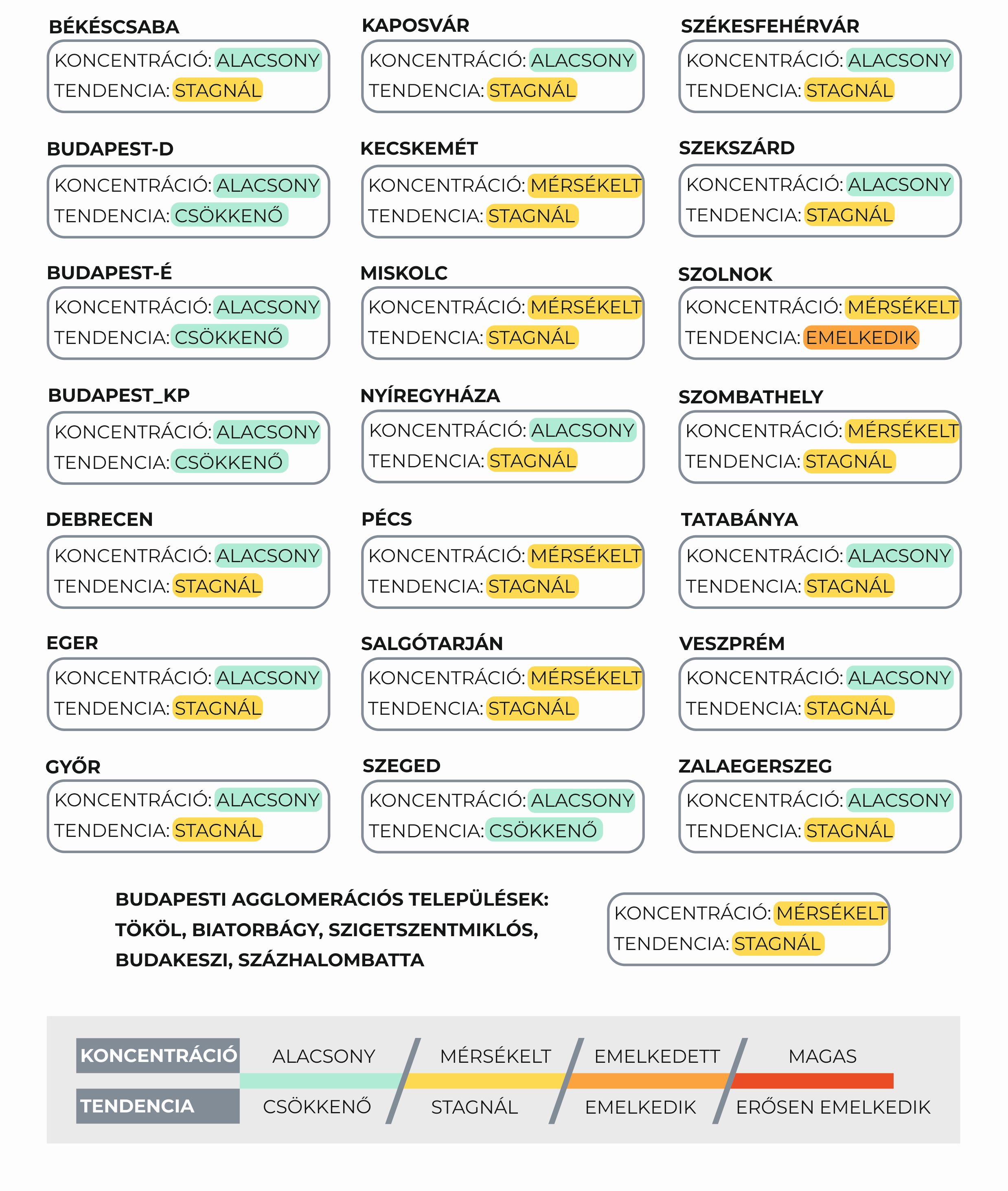 A 35. héten a vizsgált városok többségében alacsony a SARS-CoV-2 koronavírus koncentrációja, a tendencia tekintetében Budapesten és Szegeden csökken, míg Szolnokon enyhe emelkedést mutat. Székesfehérváron továbbra is alacsony a koncentráció, a tendencia pedig stagnál.