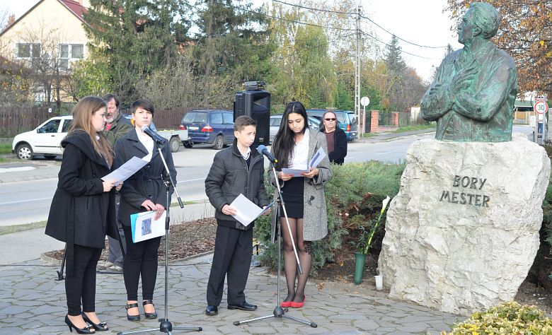 A díjak átadása után a résztvevők megkoszorúzták Bory Jenő szobrát, aki 135 éve, 1879 novemberében született Székesfehérváron. A emlékműnél virágot helyezett el Östör Annamária, Öreghegy önkormányzati képviselője is.