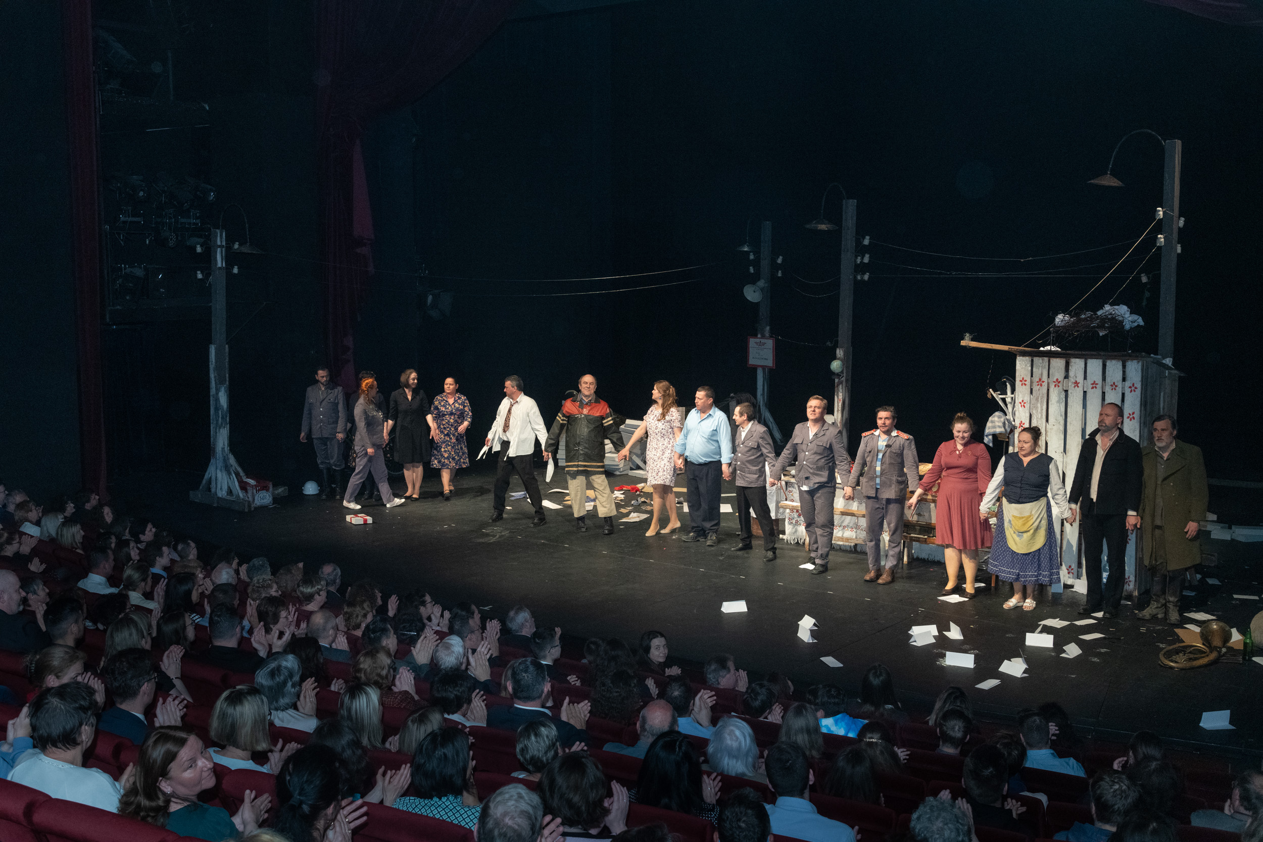 Az előadás és a vastaps után folytatódott az este, immár a függöny mögött. A Vörösmarty Színház igazgatója, Szikora János köszöntötte a társulatot, de a szokásos gratuláción túl a két héttel ezelőtti Vidéki Színházigazgatók Egyesületének tagjaival folytatott konzultáció eredményeiről is beszámolt.