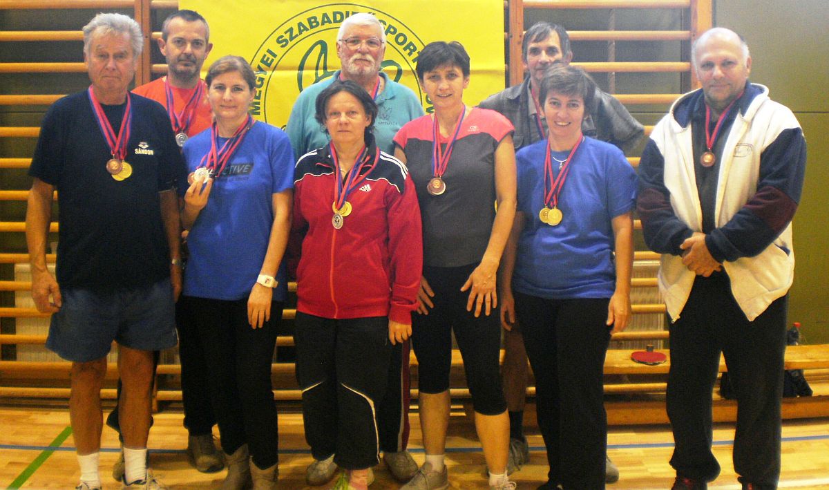 Az érmesek egy csoportja: (balról jobbra: Kossa Sándor, Makádiné Elvira, dr.Göde Andrea, Schlauszkyné Csilla, Juhászné Ágnes, Kiszely Csaba, hátsó sor: Teker Tibor, Georg Keilhauer, Simon János.A kieséses és körmérkőzéses rendszerű játékokat Végh György versenybíró és Horváth Gabriella-Horváth István szervezők bonyolították le. Az amatőr asztalitenisz verseny legeredményesebb játékosai, Dr. Göde Andrea, Schlauszky Szilárdné és Németh László, akik 2 arany- és 1 ezüstérmet szereztek, valamint Kossa Sándor 2 arany- és 1 bronzéremmel zárták a sportos programot. A rangidős Georg Keilhauer (73) 2 ezüstérmet szerzett, a legfiatalabb aranyérmes Milánkovics Milán lett.
