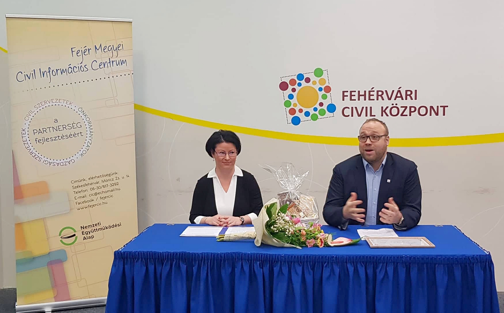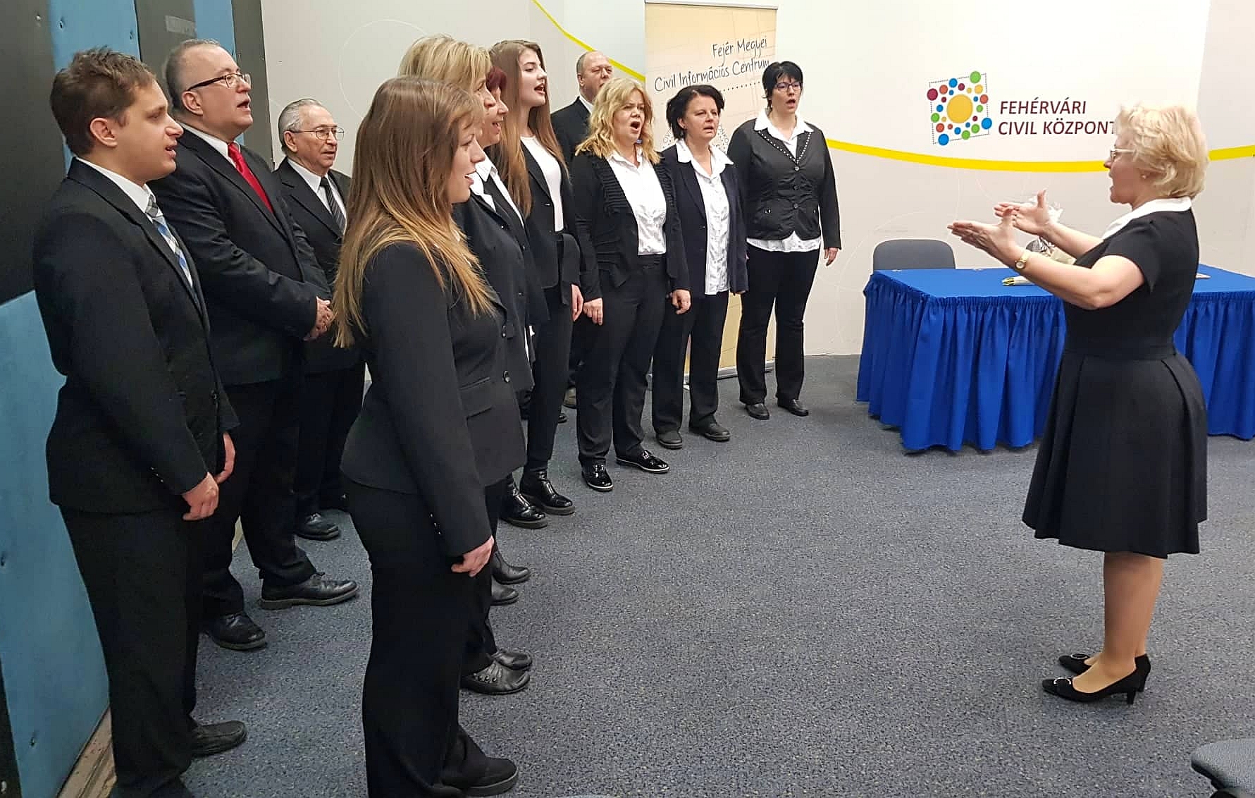 A díj átadásakor Zugor Zsuzsanna, az Echo Innovációs Műhely elnöke és Molnár Tamás környezetvédelmi és civil tanácsnok méltatta a kamarakórust pénteken délelőtt a Fehérvári Civil Központban.