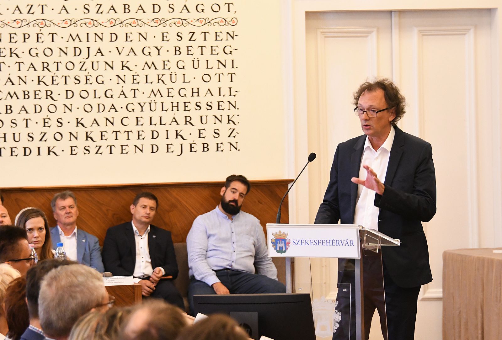 A múltidézés után a székesfehérvári távhő fejlesztési lehetőségeiről tartott előadást Szauter Ákos, a SZÉPHŐ Zrt. vezérigazgatója. A cég jelenleg 21.877 lakásnak és mintegy 1000 közületnek biztosítja a fűtést, 45 km nyomvonal távvezetéken. Szólt arról is, hogy téves dolog azt hinni, hogy a távhő egyenlő a panellakások fűtésével. A távhőszolgálatás ma egy versenyképes szolgáltatás mind árban, mind fenntarthatóságban. Nemcsak társasházak, hanem családi házak esetében is sokan választják: egyszerűbb energiaforrás-váltás, nincs lokális szennyezés, és a távhő nagyobb komfortot ad. A távhő „zöldítése” kapcsán felsorolta, hogy a jövőben a napenergia, a biomassza – faapríték, a kommunális hulladék, a villamos energia – villanykazán, a hulladékhő és a hőszivattyú használata jelenthet megoldást. Törekszenek arra is, hogy korszerű hőtermelő technológia alkalmazásával takarítsanak meg energiát.