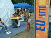 Európai Bizottság Magyarországi Képviselete, Team Europe, SOLVIT központ, MTRFH – EU Pályázati Információs Központ, EURES központ, Mobilitás, Tempus Közalapítvány, Nemzeti Europass Központ, Mezőgazdasági és Vidékfejlesztési Hivatal – személyes tanácsokkal látják el az érdeklődőket. Az EU-totón és EU-lottón megszerzett játékeurókat az ún. Európa-piacon lehet majd levásárolni. Az európai sokszínűség és nemzeti értékek bemutatására európai filmeket tekinthetnek meg ingyenesen a sátor látogatói. Az ingyenes EUvonalat (06-80-38-2004) a rendezvény teljes időtartama alatt mobiltelefonról hívhatják az érdeklődők.