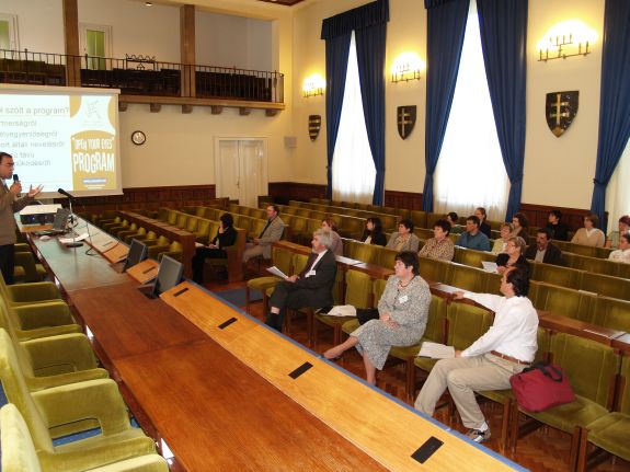A Kommunikációs és Civilkapcsolatok Irodája EU-s programsorozatának egyik elemeként ma Szakmai Napot tartottak a Városháza Nagytanácstermében, ahol az EU által finanszírozott projektek mutatták be. A prezentációk után egy rövid fórum volt, ahol lehetőség nyílt a tapasztalatcserére és a személyes ismeretségek, kapcsolatok kiépítésére.