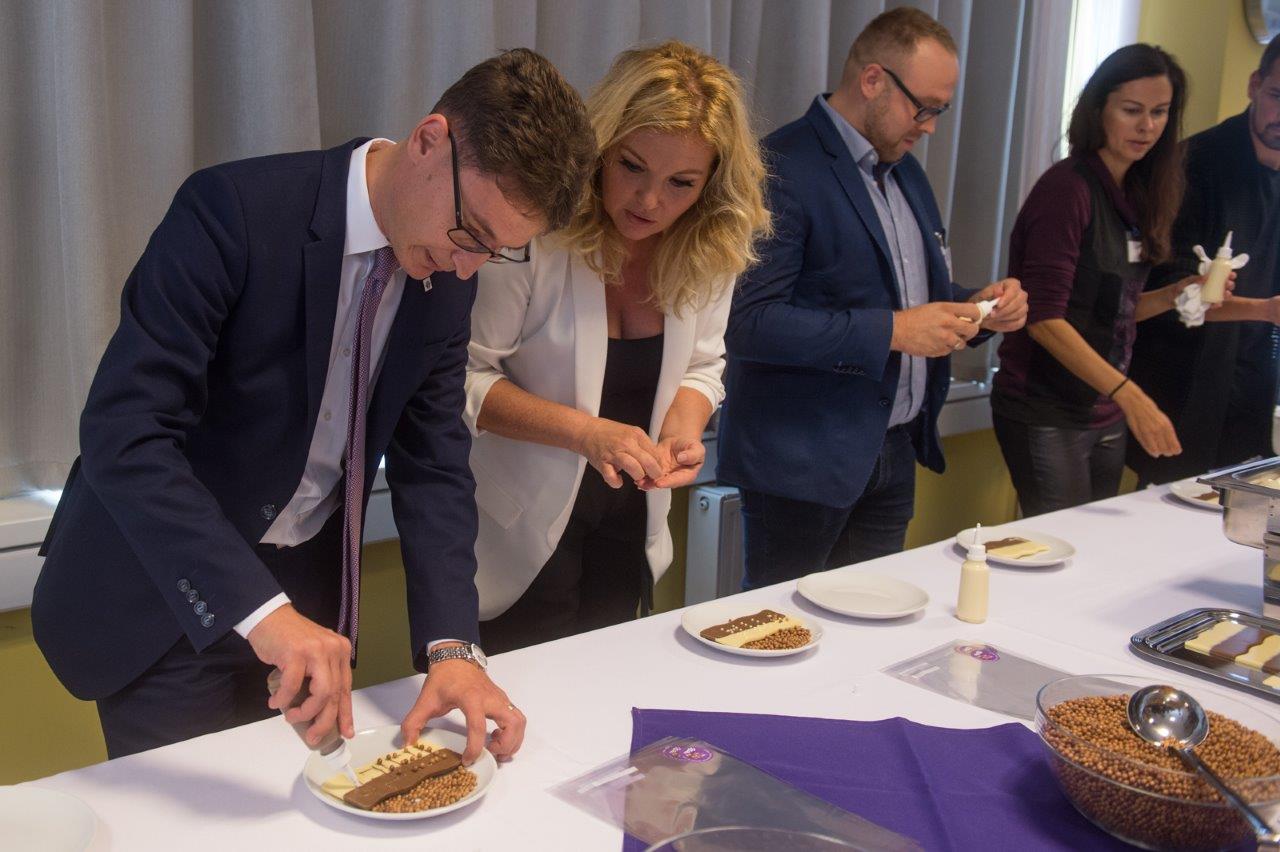 Csütörtökön, a termék hivatalos bemutatóján a város polgármestere Cser-Palkovics András és Liptai Claudia is kipróbálta, az új csoki gyártását. A bemutatón mindenki elkészíthette egyedi csokiját.