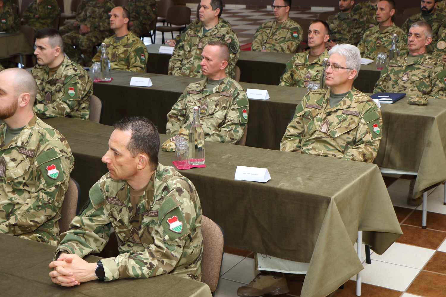 - A különböző szervezeti elemek, területek ugyanakkor megmutatták: a priorizált feladatok, az alapműködtetés mellett végre tudjuk hajtani valamennyi, alakulatunkra szabott új feladatot, legyen szó közterületi járőr, vagy kórházszolgálati és határzárral kapcsolatos teendőkről – foglalta össze. - Adják át állományuknak: fontos, szakmailag kiemelkedő munkát végzett a csapat! Önök nélkül ez nem valósulhatott volna meg! – hívta fel az állomány figyelmét Vokla ezredes, aki – megköszönve egyúttal az MHP parancsnoksága támogatását – arra kérte a jelenlévő elöljárókat, a felterjesztett kérelmeket pozitívan bírálják el, segítve ezzel a katonai szervezet munkáját.