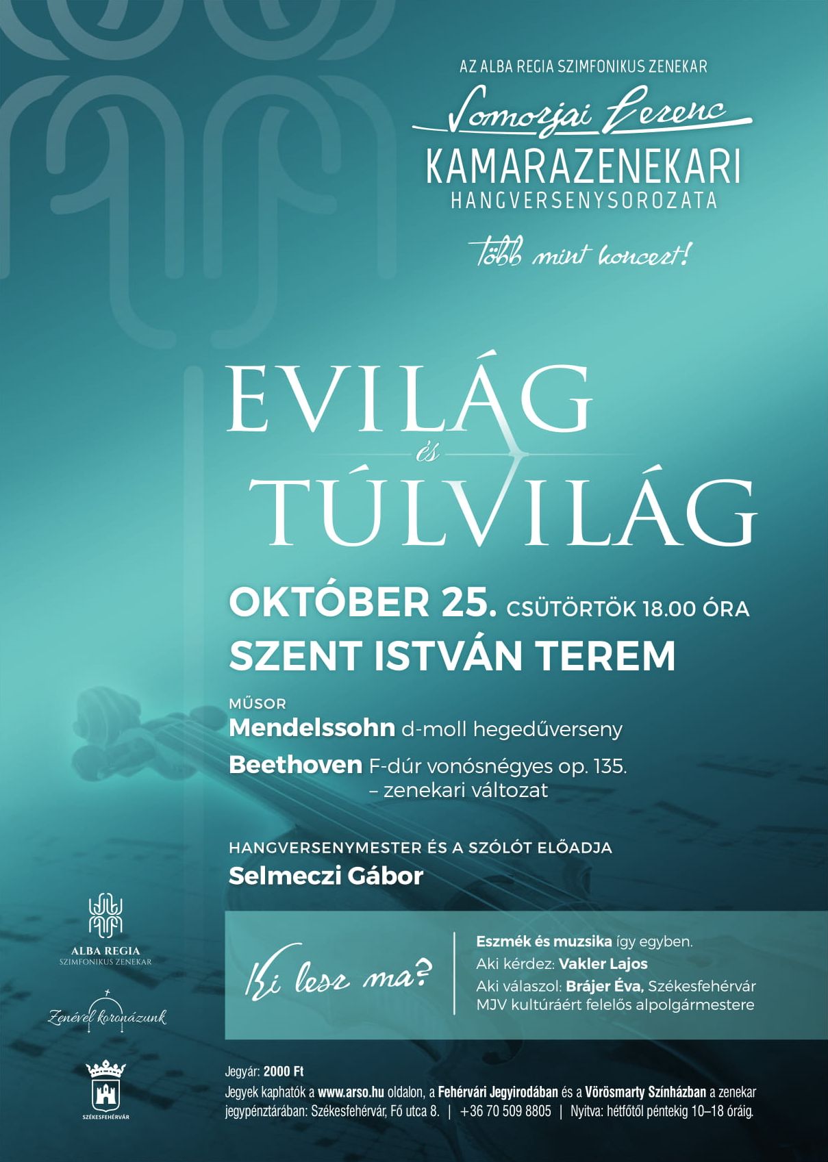 Evilág és túlvilág címmel zárul az idei Somorjai Ferenc Hangversenysorozat