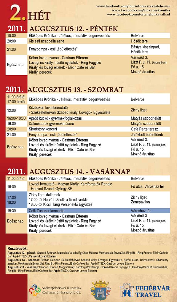 Történelmi időutazásra invitálta augusztus első hétvégéjén a Szabad Színház Székesfehérvár polgárait és a városba látogató turistákat. Az idei Történelmi Kavalkád négy hétvégén át tart, melyet ebben az évben már másodszor rendez meg a Székesfehérvári Turisztikai Közhasznú Nonprofit Kft. az önkormányzat támogatásával.