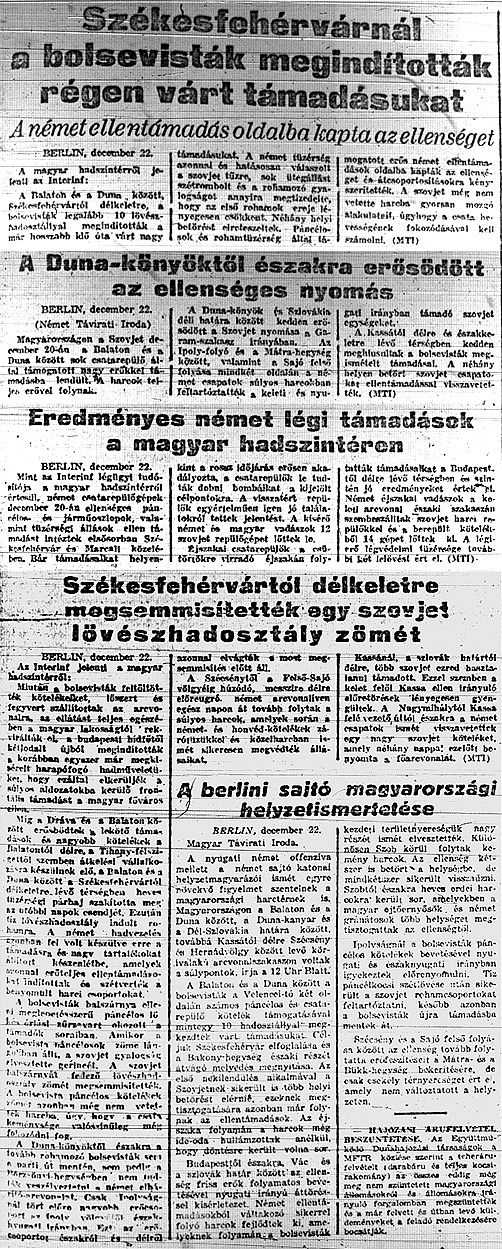 Székesfehérvár bevételéért 1944 december 22-én indult meg a támadás, a következő napon már a szovjet csapatok birtokolták. A város visszavételéért a német és magyar csapatok a Konrád III. hadművelet keretében 1945. január 18-án indítottak támadást, ennek eredményeként január 22-én visszafoglalták. A március 22-ig tartó katonai megszállás, a frontesemények következtében a város lakossága a felére zsugorodott...