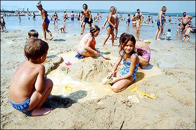 A déli part egyik legszebb strandja egész nyáron biztosítja a kulturált és szép környezetet a nyaralók, strandolók részére. A korábbi évekhez képest rengeteg új szolgáltatással, szórakozási és játék lehetőséggel bővült itt is a kínálat. Légvár, elektromos kisautó, rönkjátékok, homokozó, játszótér, a tóból elkerített gyermekmedence; kosárlabda, kézilabda, lábtenisz pályák; snooky és vizibicikli kölcsönző, valamint vízicsúszda; és az elmaradhatatlan büfék, étterem, játékbolt, fagylaltozók, sörözők szerepelnek az igénybe vehető szolgáltatások listáján.