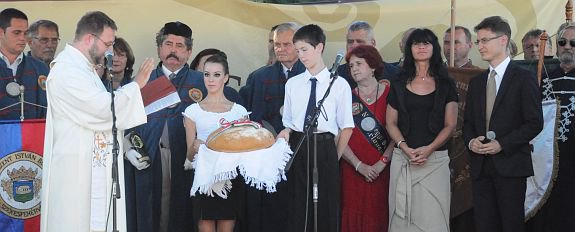 A borrendek felvonulását követően Tornyai Gábor plébános áldotta meg az új kenyeret, majd Székesfehérvár polgármestere Cser-Palkovics András és öreghegy önkormányzati képviselője Östör Annamária köszöntötték a résztvevőket.