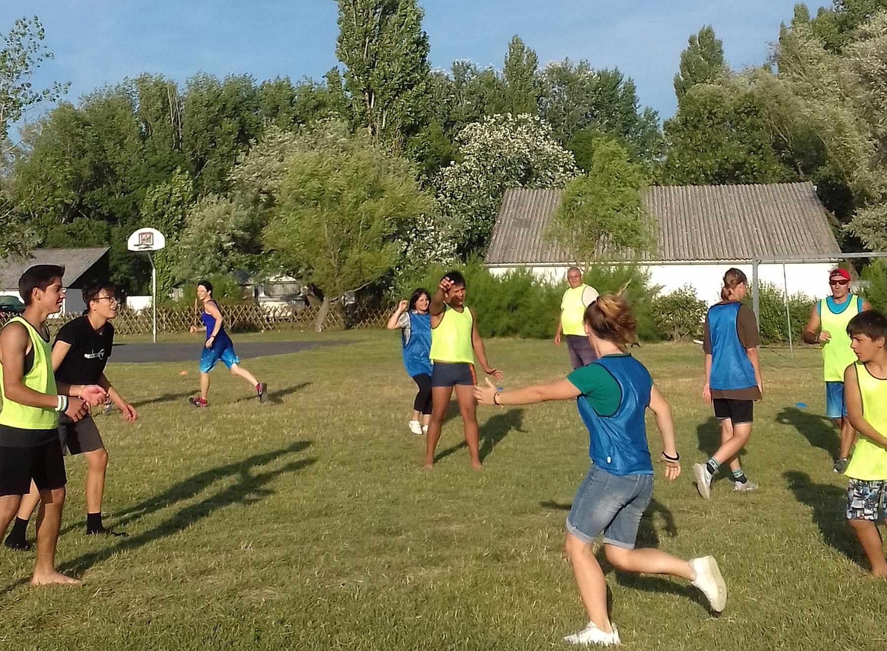 Szerdai ebédünk után csokievő versenyt rendeztünk, majd délután megérkeztek a Fehérvár Lionz Ultimate Frizbi játékosai, akiket már a gyermekek többsége ismert és várt. Az amerikai frizbimeccsbe még a portás bácsi is beállt, a gyerekek nagy derültségére. A közös vacsora után éjszakai fürdőzéssel zártuk a napot.” - számolt be a táborozás adta élményekről Janóné Ildikó.