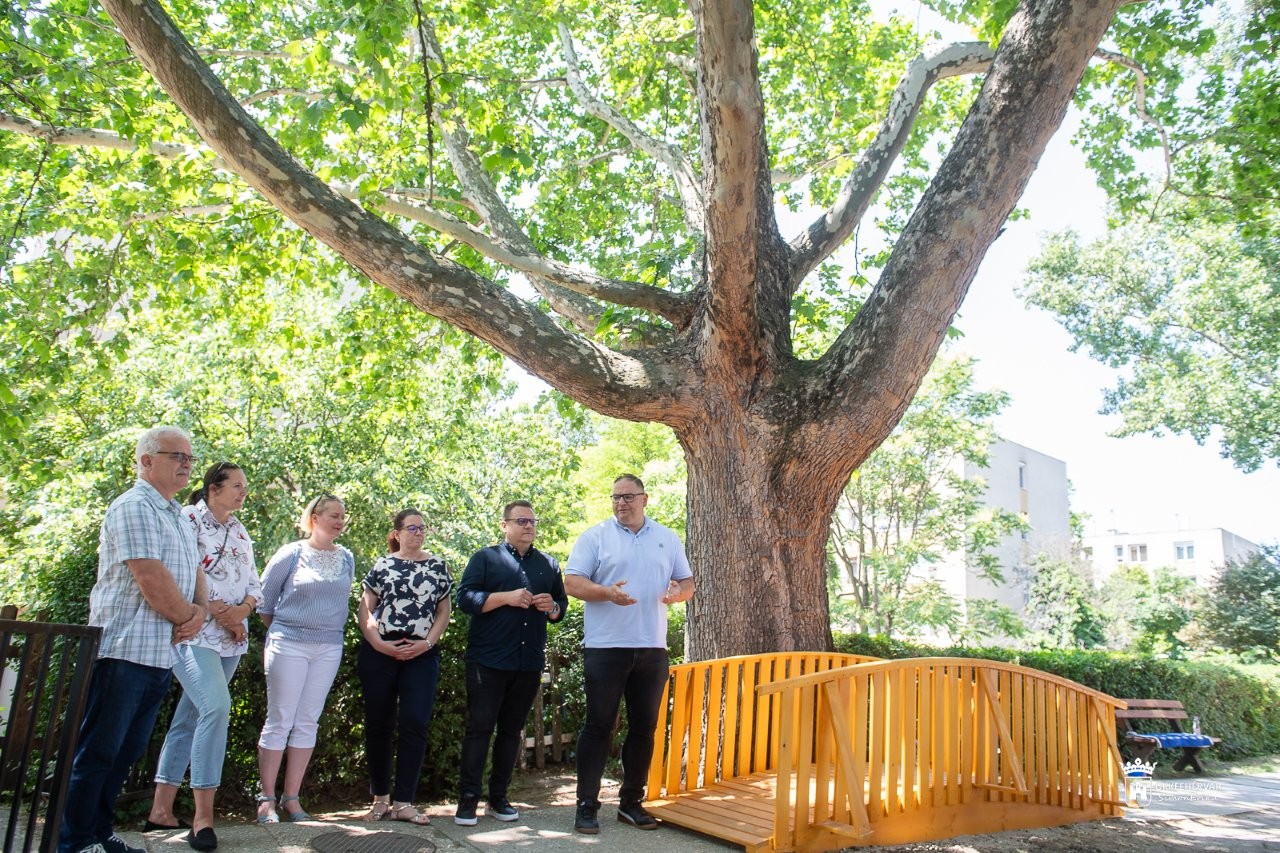 Mészáros Attila alpolgármester kiemelte, Székesfehérvár Önkormányzata és a Szakképzési Centrum között tavaly indult el az az együttműködés, melynek keretében az SZFSZC-hez tartozó valamelyik iskola szakipari munkával segít, szépít meg egy városi intézményt. Az első ilyen projekt a Felsővárosi Óvoda udvari játszópavilonjának felújítása volt, most pedig a Százszorszép Bölcsőde udvarára készítettek egy kis fahidat a Vörösmarty Technikum tanulói. Az udvar egyik nagyméretű fájának gyökerei miatt balesetveszélyes volt a járda, bontással és térköves járdaépítéssel azonban károsították volna az értékes növényt. A néhány méteres szakaszt a fahíddal ívelik át, ami fontos környezetvédelmi szempontból is, emellett az intézmény egy újabb játkelemmel gazdagodott, a gyerekek nagy örömére.