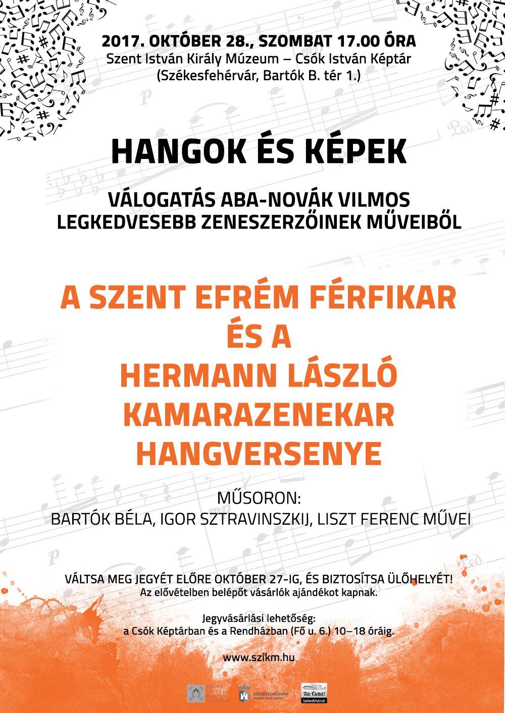 Október 28-án szombaton 17 órakor válogatást hallhatunk Aba-Novák Vilmos legkedvesebb zeneszerzőinek műveiből. A hangversenyen a Szent Efrém Férfikar és a Hermann László Kamarazenekar működik közre. A műsorban Bartók Béla, Igor Sztravinszkij és Liszt Ferenc művei szerepelnek.Aki október 27-ig elővételben megváltja a belépőjegyet, nemcsak az ülőhelyét biztosítja, hanem ajándékot is kap. Jegyvásárlásra a Csók Képtárban és a Rendházban van lehetőség 10 és 18 óra között.