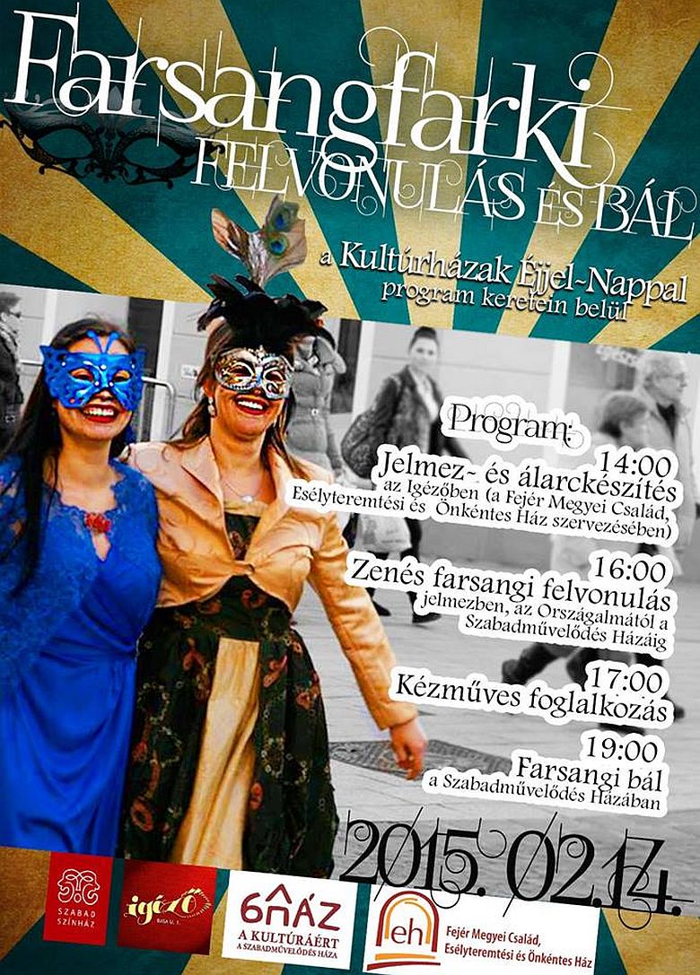 A Basa utca 1. szám alatt található „boszorkányműhelyben” jelmezek és álarcok készülnek a Fejér Megyei Család, Esélyteremtési és Önkéntes Ház szervezésében, majd 16 órakor indul a Szabad Színházzal a boszorkányok vezette maskarás felvonulás az Országalmától A Szabadművelődés Házáig. Az érdeklődőknek délután 17 órától kézműves foglalkozásokkal is készülnek a szervezők A Szabadművelődés Házában. A program az este 19 órakor kezdődő Farsangi bállal ér véget.