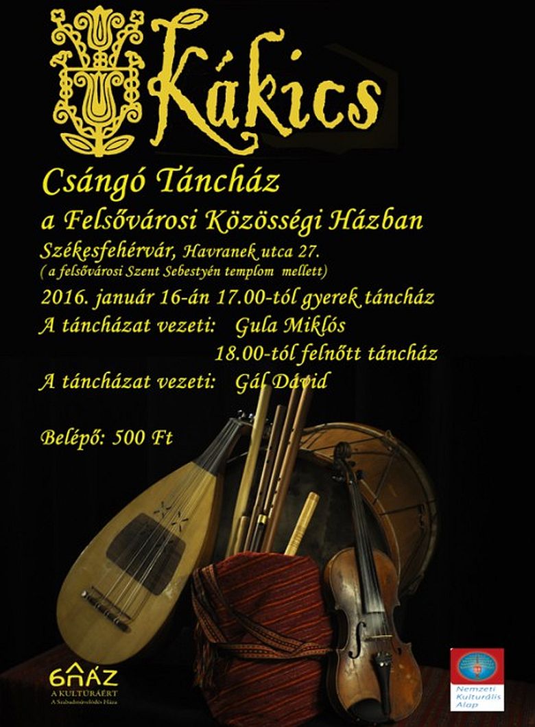 Több éve tudják a táncolni vágyók, ha eljön a hónap harmadik szombatja, akkor irány a Felsővárosi Közösségi Ház, mert felcsendülnek a moldvai, felcsíki és gyimesi táncdallamok. A következő Kákics táncház január 16-án lesz. 17.00 órától kezdődik a gyerektáncház Gula Miklós vezetetésével, majd utána Bodó Bán Enikő tart kézműves foglalkozást. 18.00 órától kezdődik a felnőtt táncház melyben Gál Dávid mutatja a lépéseket.