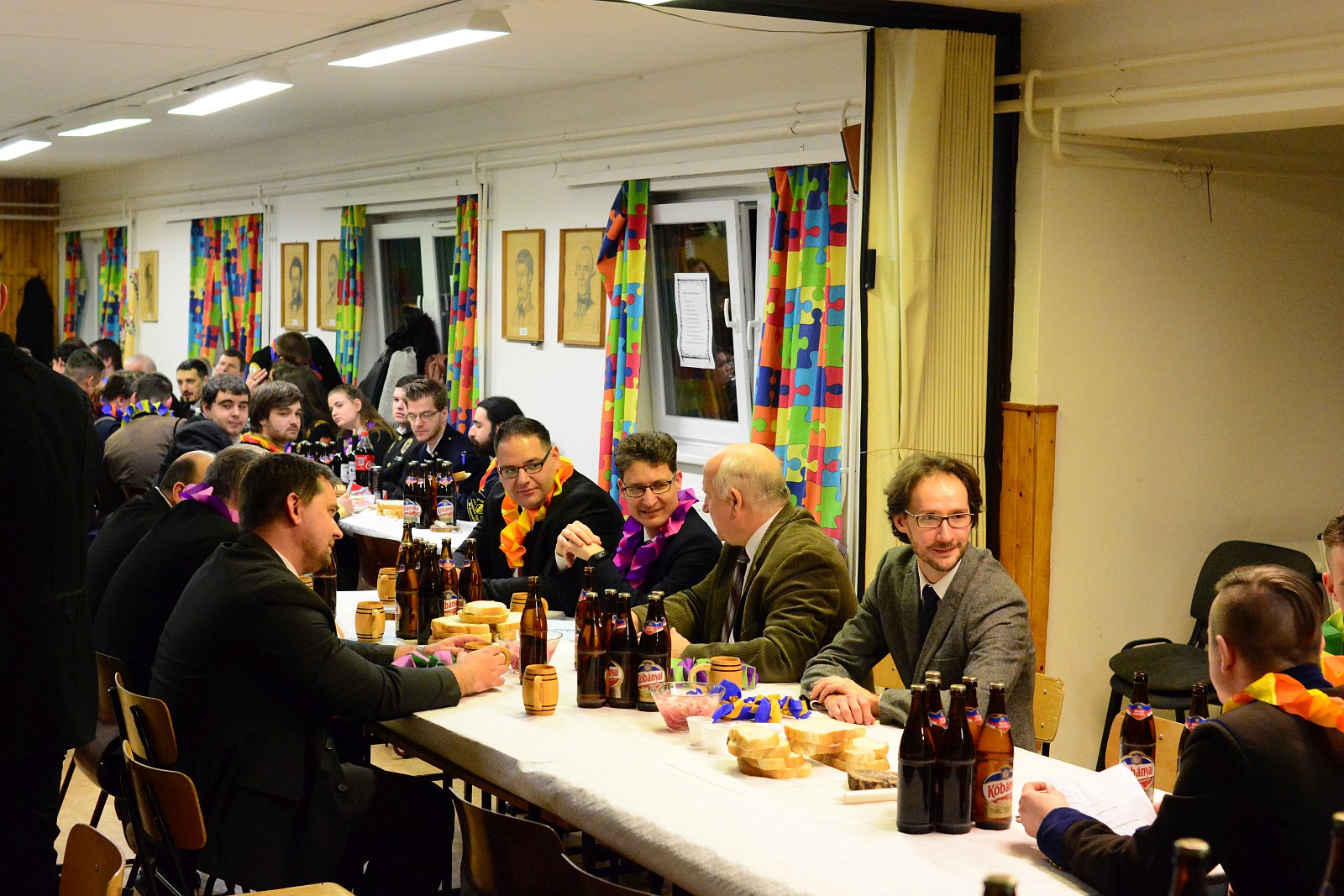 A péntek esti Farsangoló Szakestély is a bányász, az erdész, a kohász és a geodéta himnusz eléneklésével kezdődött, gyertyafény mellett zajlik az esemény és a szabályok szerint ekkor nem lehet fényképezni sem.