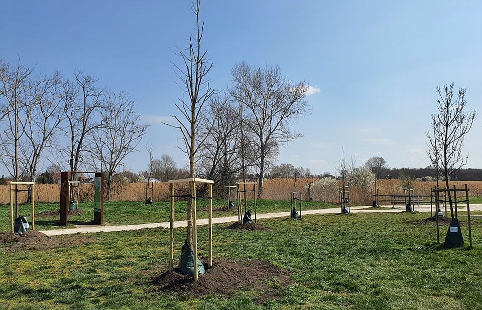 Mindegyik fához öntözőzsákot is telepítettek mely egyenletes és folyamatos vízutánpótlást biztosít a fiatal fák gyökereinek.