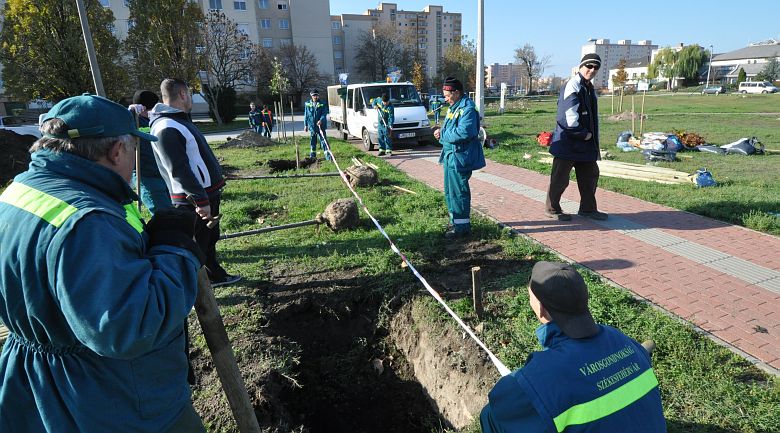 Háromszor iskolázott 14/16-os körméretű földlabdás növények kerültek a parkba, amiket támrudakkal védenek a széltől és a vandáloktól. „Õsszel, nyugalmi időszakban érdemes a fákat elülteni, mert ekkor a legnagyobb az esély arra, hogy ezek megerednek – hívta fel a figyelmet Csete Gábor. Bár az idén a sokévi átlagnál több csapadék esett, a talajréteg nem ázott át olyan szinten, mint amire szüksége lenne a növényeknek, éppen ezért a fákat beiszapolva ültettük és jövőre egész nyáron öntözünk majd, hogy biztosítsuk a megfelelő nedvességet.”