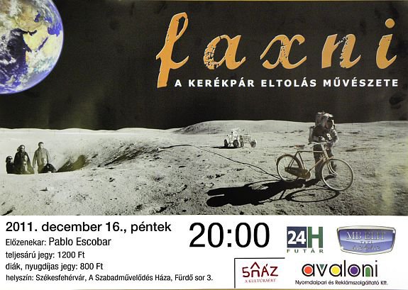 A Faxni együttes lép fel december 16-án, pénteken este a Szabadművelődés Házában, a Fürdő sor 3. alatt. A program este nyolc órakor veszi kezdetét, ahol előzenekerként a Palbo Escobar adt koncertet. A rendezvényre a normál áras jegy 1200 Ft, míg a kedvezményes jegyár 800 Ft. A Faxni együttes tagjai: Mohai Tamás, Mohai Győző, Almási Enikő, Müller Ádám és Rácz Roland.