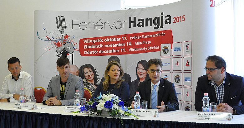 A 2015-ös Fehérvár Hangja elindításáról Cser-Palkovics András polgármester, Mészáros Attila alpolgármester, Juhász Zsófia, a Fehérvári Programszervező Kft. ügyvezetője, Tomek Noémi rendezvényszervező, Pély Barna, a Fehérvár Hangja 2015 zsűri elnöke, valamint Kis-Márton Vidor, a Panorama Offices ügyvezető igazgatója közösen tartott sajtótájékoztatót.