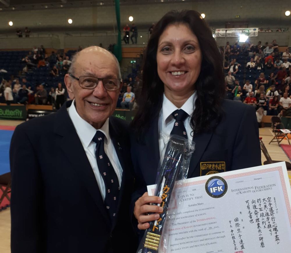 Eközben az IFK hazai szervezetének másik vezető mestere, Mátó Katalin az angliai Crawley-ban bíróként vett részt a legendás British Open-en. Itt az a megtiszteltetés érte, hogy eddigi munkássága elismeréseként Hanshi Steve Arneil, a világszervezet vezetője az 5. dan fokozatot adományozta neki és ezzel a magyarországi szervezetben elsőként Shihan rangra emelte.