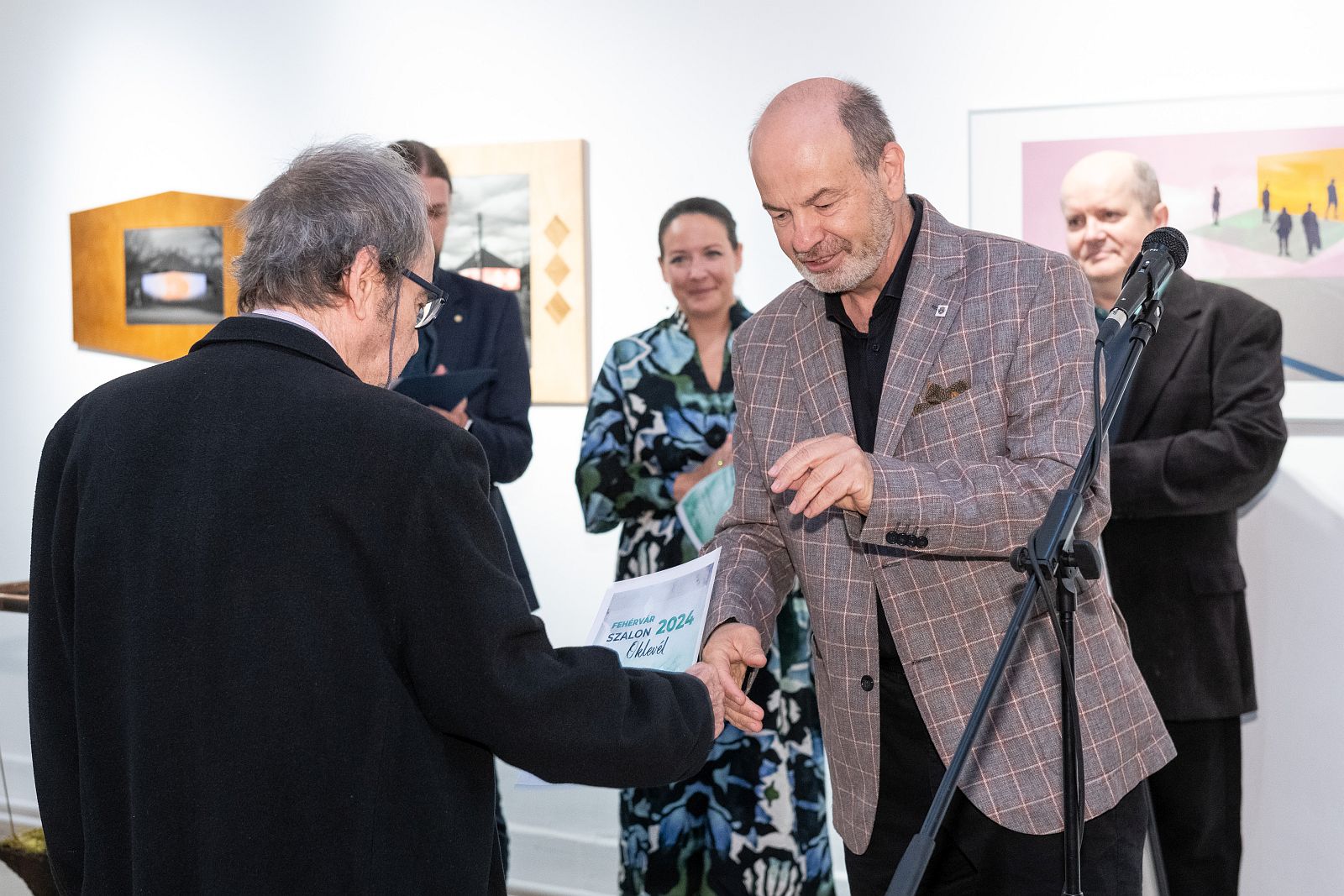 Lehrner Zsolt köszönetét fejezte ki valamennyi alkotónak, akik időt szántak erre a projektre. Az alpolgármester átadta az elismeréseket az idei évben díjazott három képzőművésznek, Bauer Istvának, Mounier Noémi Klárának és Ujházi Péternek.