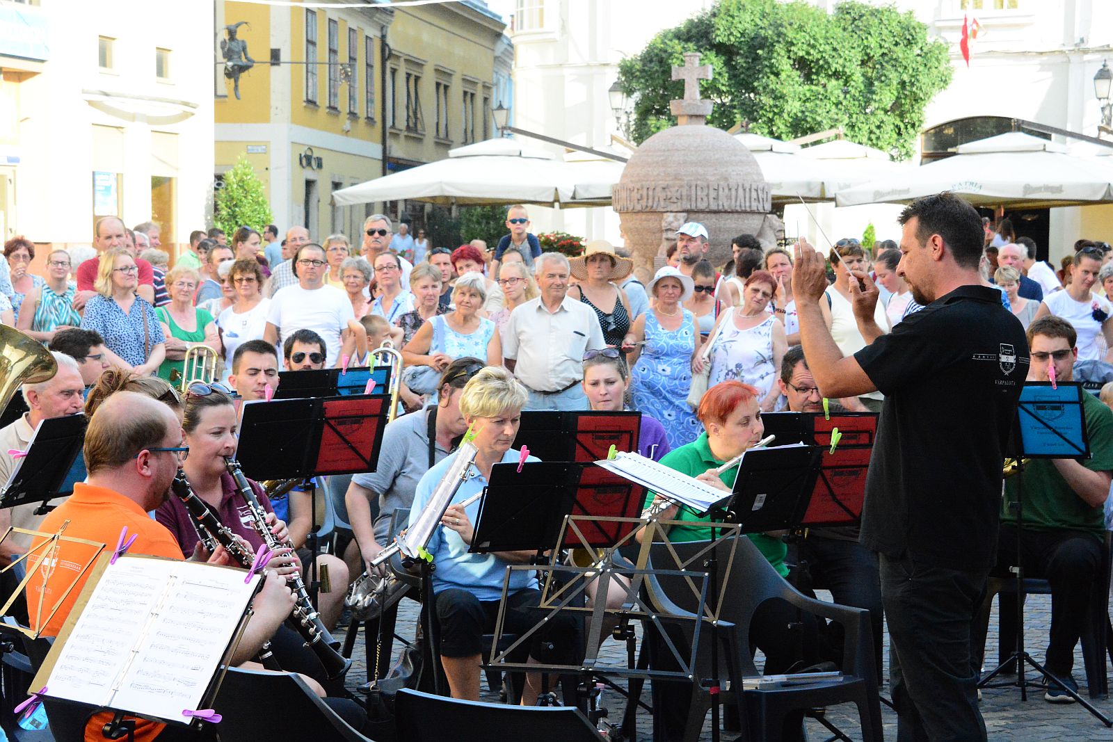 A 90 éves Várpalotai Bányász Fúvószenekar ismert filmzenéket, valamint egy Máté Péter dalaiból készült egyveleget játszott.