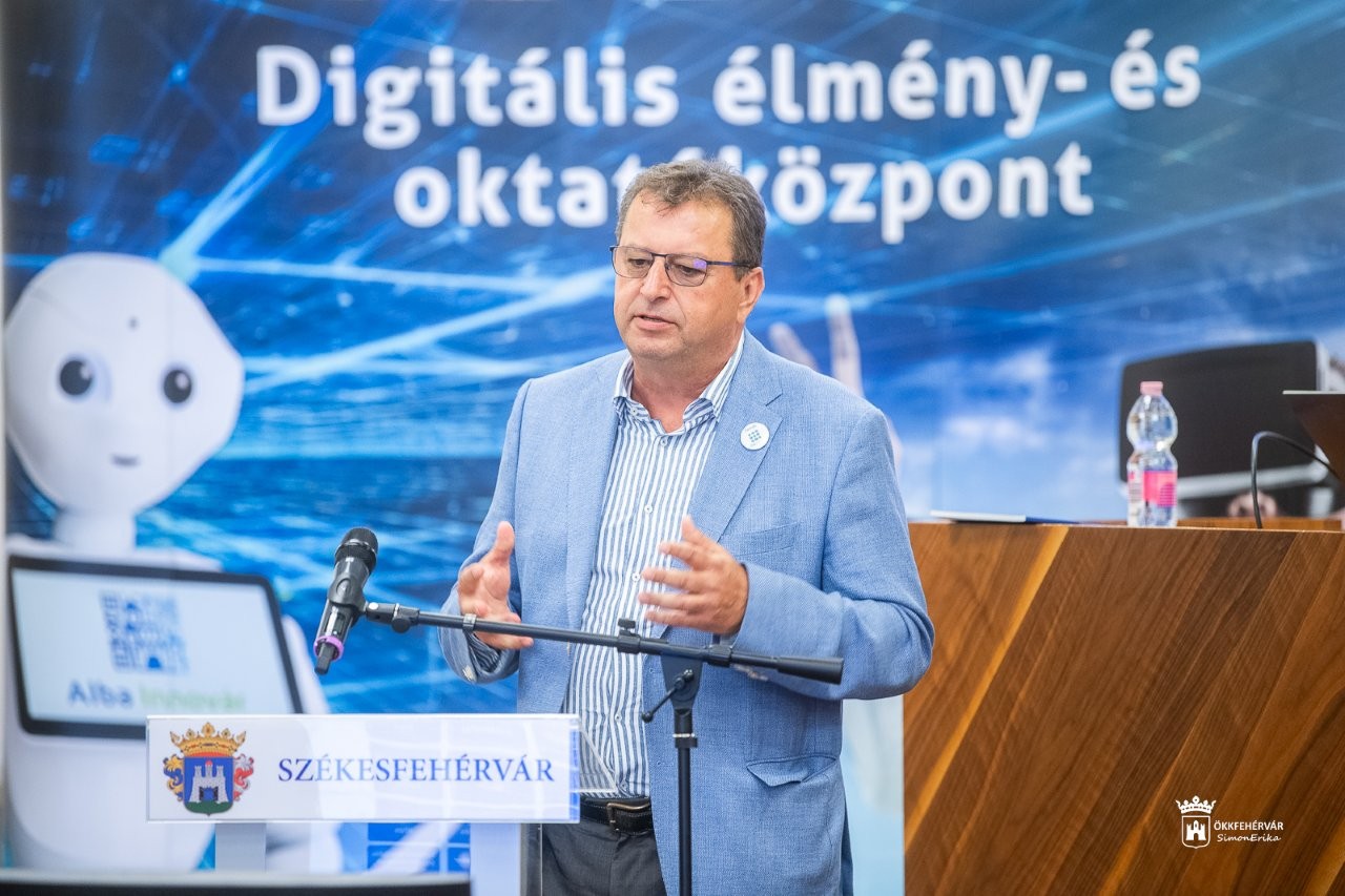 „Az a missziónk, hogy egy tanulóvárost hozzunk létre egy élhető városon belül. Ezt csak úgy lehet megcsinálni, ha a legmagasabb szintre visszük az oktatást!” – hangsúlyozta előadásában Laufer Tamás, az Alba Innovár vezetője. Hozzátette, a központ elindításával az volt a céljuk, hogy minél többen megízleljék és használják a digitális technológiákat. Mostanáig közel 40 ezren látogatták meg az Alba Innovár különböző programjait. Az első fő csapásirány a pályaválasztás támogatása, majd az okostantermi hálózat létrehozása volt, de szerveztek felnőttképzést, táborokat, és elindították a nagy- és középvállalatok digitális érzékenyítését is – mindezt ingyenesen. A munkát tovább folytatják a kibervédelmi oktatással, a mesterséges intelligenciával, a digitális szolgáltatásokkal. Laufer Tamás hozzátette, eddig 17 általános iskolában hoztak létre okoktantermet, ami körülbelül 9.000 diákot érint. A következő tanévtől áttérnek a középiskolákra: a Teleki Blanka Gimnáziumban, a Széchenyi István Technikumban és egy további intézményben lesz ilyen speciális tanterem.