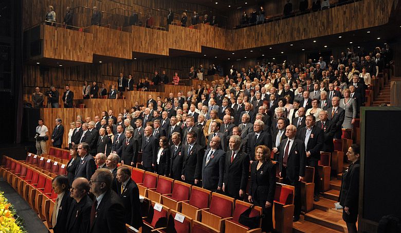 Balog Zoltán, az emberi erőforrások minisztere nemzeti ünnepünk alkalmából Magyar Érdemrend Tisztikereszt, Magyar Érdemrend Lovagkereszt, Magyar Arany Érdemkereszt, Magyar Ezüst Érdemkereszt, Magyar Bronz Érdemkereszt állami kitüntetéseket adott át Budapesten a Művészetek Palotájában.
