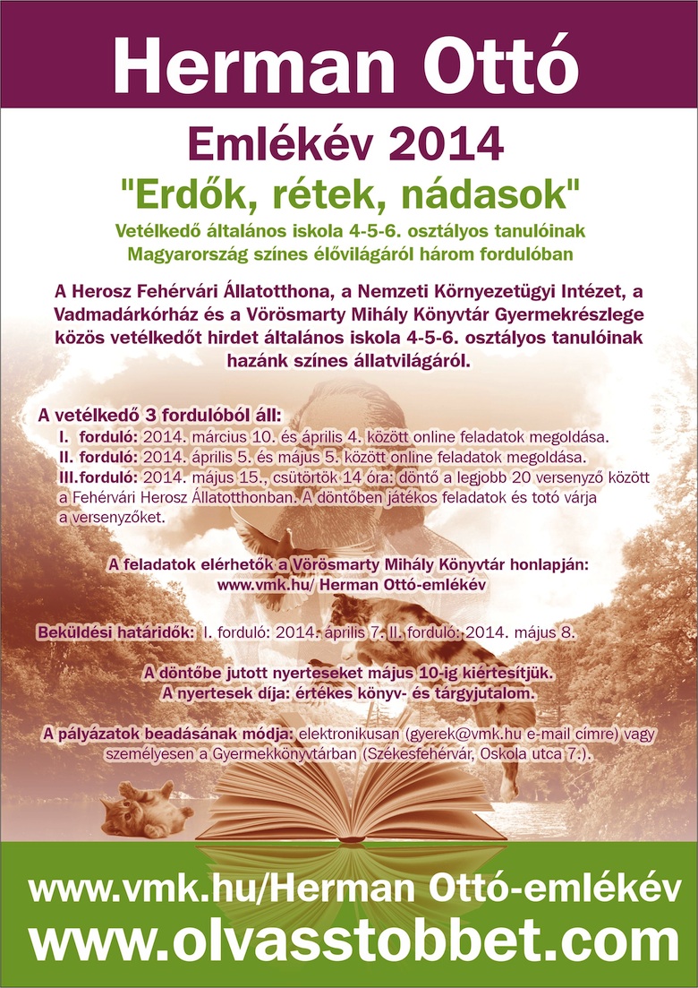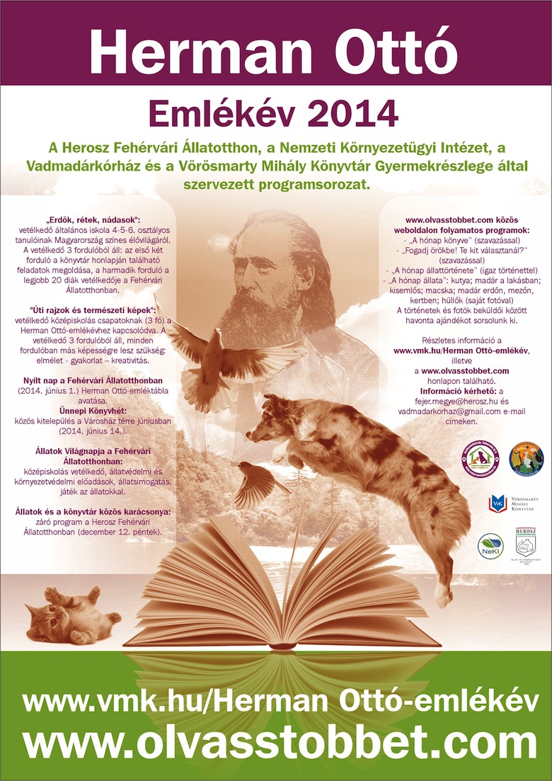 Herman Ottó emlékének szentelik a 2014-es esztendőt országszerte. A rendkívül sokoldalú természettudós száz esztendeje hunyt el, a jubileum tiszteletére számos program, rendezvény valósul meg intézmények, szervezetek, nemzeti parkok közreműködésével. Fehérváron a tudós nevét viselő HEROSZ, a Vörösmarty Mihály Könyvtár, a Vadmadárkórház, illetve a Nemzeti Környezetügyi Intézet Közép-dunántúli Kirendeltsége összefogásával valósulnak meg a programok.