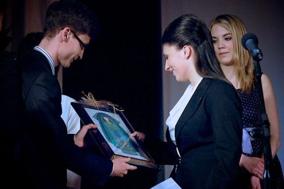 Pruma Nikolett, a 2011-es Fehérvári Versünnep győztese átveszi az elismerést dr. Cser-Palkovics András polgármestertől