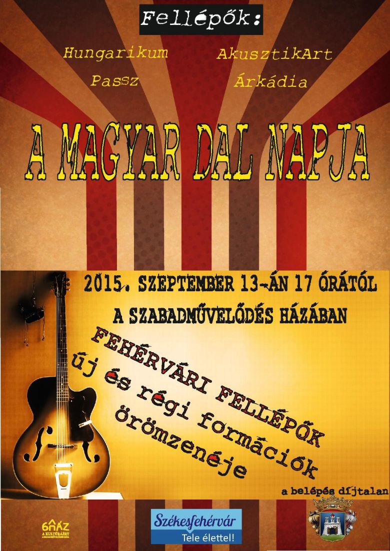 Szeptember 13-án, vasárnap négy fehérvári zenekar és a MéhKasAula részvételével ünneplik a Magyar Dal Napját A Szabadművelődés Házában. Az uudiovizuális est sötétedéstől este 11 óráig tart majd. A résztvevők a koncertek után "jazzoid" zenéket hallhatnak magyar előadóktól Szabó Gábortól Ákos Stefin át a Zagaron keresztül a Kerekes Bandig, csak bakelitről Dj Zöldtől és vendégeitől.