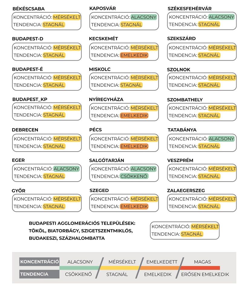A 40. héten a vizsgált városok közül emelkedés tapasztalható Kecskeméten, Nyíregyházán, Pécsen és Szegeden, míg Salgótarjánban csökkenés látható. A vizsgált helyszínek közül 17 minta koncentrációja mérsékelt volt, míg öt városban, így Székesfehérváron is alacsony volt a víruskoncentráció. Az NNK azt kéri: aki még nem tette, éljen a védőoltás lehetőségével.