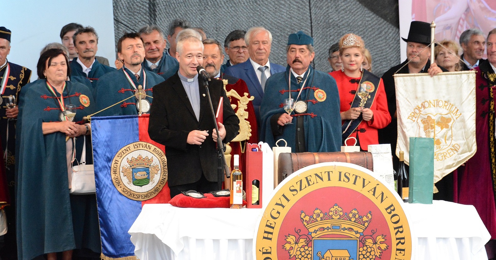 Egyházi boráldást mondott a színpadi asztalon, valamint az otthon és a pincékben lévő borokra, a borért keményen dolgozó, a szőlőt művelő emberekre Tóth Tamás, a Vasútvidéki Prohászka Ottokár – Jó Pásztor plébánia plébánosa.