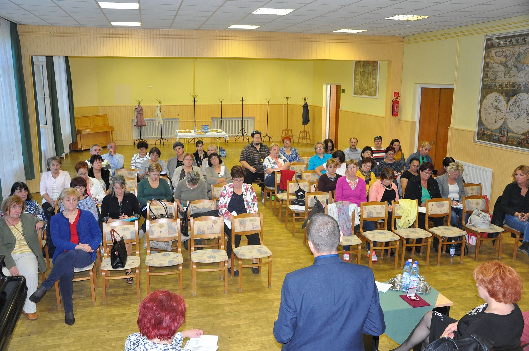 „Hagyományos évnyitó értekezletünkre minden alkalommal egy országos tisztviselőt hívunk meg, idén Szabó Zsuzsanna, alelnök asszony és Dr. Selmecziné dr. Csordás Mária, a Pedagógusok Szakszervezetének vezető jogtanácsosa jött el. Legfőképpen az előttünk álló feladatokról lesz szó a mai értekezleten, valamint ebben a tanévben teljes körű tisztújítást tartunk. A harmadik programpontunk a marketing-kommunikáció lesz, amely a tagtoborzásra irányul. Tanévkezdés során többféle kérdés és probléma merülhet fel, ezért meghívtuk Török Szabolcs urat, a Székesfehérvári Tankerület igazgatóját is, aki a 2017/2018-es tanév feladatairól tart előadást. Ezen kívül szó lesz még a Nemzeti Alaptanterv koncepciójának véleményezéséről, a mérés-differenciálás kérdésköréről és egyéb olyan dolgokról, amelyeket leginkább a szakszervezeti titkárok látnak a saját tantestületükben.” - fogalmazott Jámbor Ferencné, a Pedagógusok Szakszervezete Fejér Megyei Szervezetének elnöke.