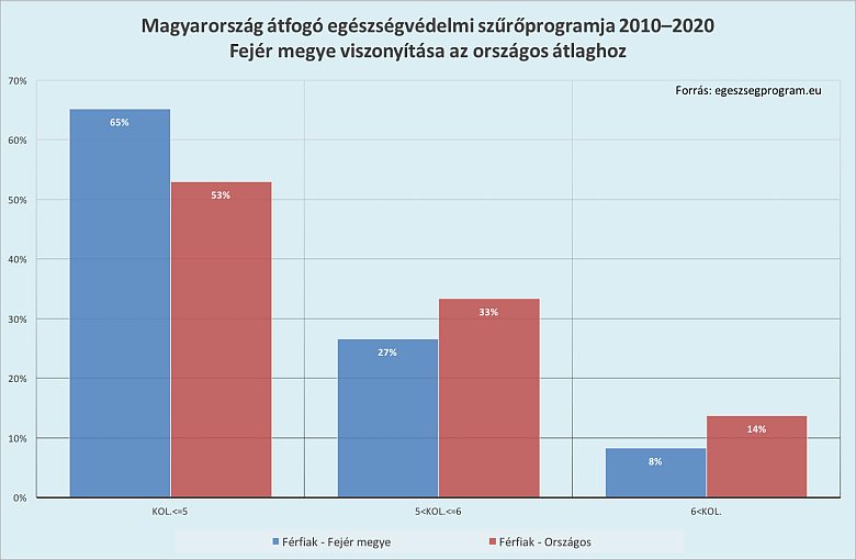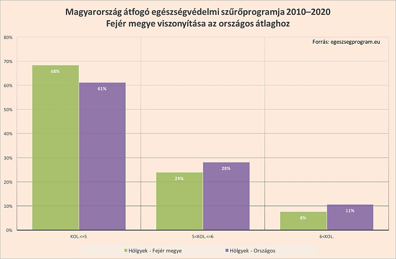 Fejér megye is felkerült a koleszterintérképre, mint a legegészségesebb megye, azonban így is minden harmadik lakosnak javasolható az életmódváltás. Az országos statisztika alapján elmondható, hogy a Fejér megyei eredmények az országban a legjobbak, a hölgyek pedig abszolút elsők e tekintetben. Míg a férfiak 65%-a, addig a hölgyek 68%-a egészséges a szűrővizsgálatok alapján. De még így is minden harmadik férfi és nő érintett a megyében, akiknek emelkedett vagy magas a koleszterinszintje.