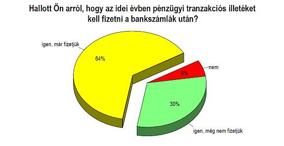 A számlavezető pénzintézetek közül többen személyesen (telefonon, e-mailban, postán) közvetlenül is értesítették ügyfeleiket a tranzakciós illeték bevezetéséről, ilyen módon a megyében működő gazdálkodó szervezetek 18 százaléka kapott közvetlenül információt, többségük azonban csak a bank általános hirdetményében találhatták meg a vonatkozó tájékoztatást, míg 40 százalékuk eddig semmilyen tájékoztatást nem kapott a pénzintézetétől ebben a kérdésben.