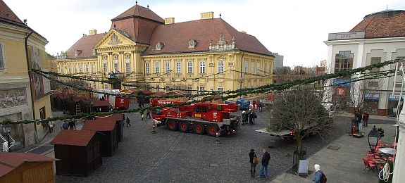 Szerdán délután a korábbi évek hagyományait követve a székesfehérvári tűzoltók állították fel Székesfehérvár karácsonyfáját a Városház téren. Akárcsak tavaly, idén is Székesfehérvárról „érkezett” a fenyő: a tűzoltók a Béla úti temetőben vágtak ki egy a sírokat már-már veszélyeztető 5-6 méter magas ezüstfenyőt, majd teherautóval a belvárosba szállították, ahol a Városháza téren több, mint egy órás munkával bevágták a helyére.