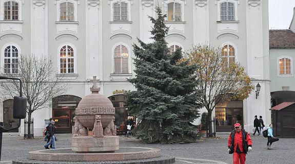 Felállították Székesfehérvár karácsonyfáját a Városház téren