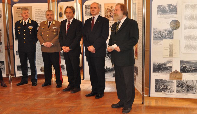 A kiállítást Dr. Hermann Róbert, a Hadtörténeti Intézet és Múzeum főtanácsosa, tudományos-helyettese ajánlotta az érdeklődők figyelmébe, aki a közelgő centenárium kapcsán az Osztrák-Magyar Monarchia első világháborús szerepéről beszélt. Dr. Hermann Róbert kiemelte, hogy az első világháború előtt, amely soha nem látott szenvedést hozott világnak, minőségi váltás következett be a hadviselésben. A vasút, a távíró, a légjáró csapatok és a magas technikai felszereltség megjelenése miatt 1914-ben mindenki abban bízott, hogy a háború hamar véget ér, de végül négy év következett „vérben és vasban”. Az Osztrák-Magyar Monarchia 1 millió katonát vesztett el, közülük 660 ezer a Magyar Királyság polgára volt.