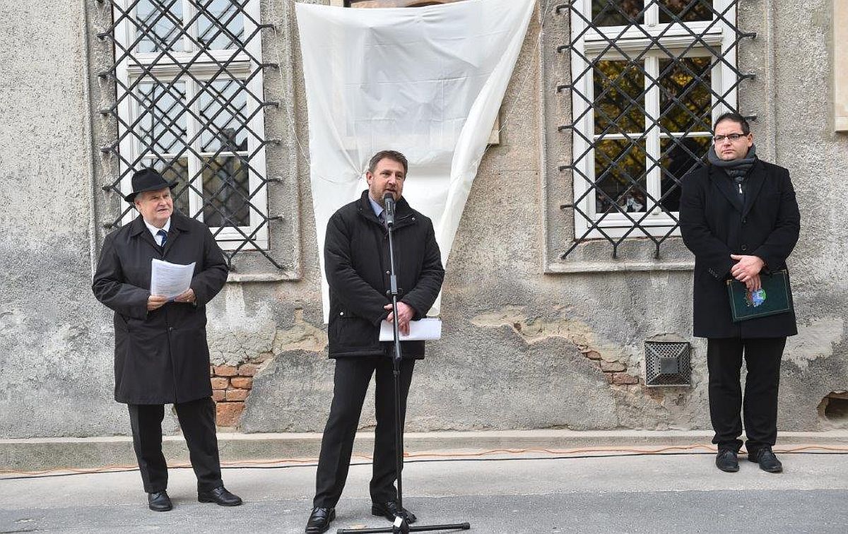 Az ünnepi köszöntő után került sor a Nagy Benedek szobrászművész által készített dombormű leleplezésére, melyet Kralovánszky Máriával – a neves régész unokahúgával – közösen avatott fel Székesfehérvár alpolgármestere.