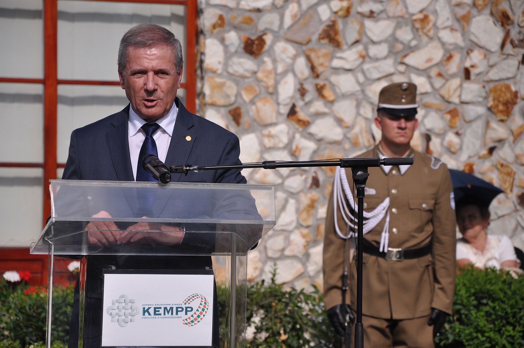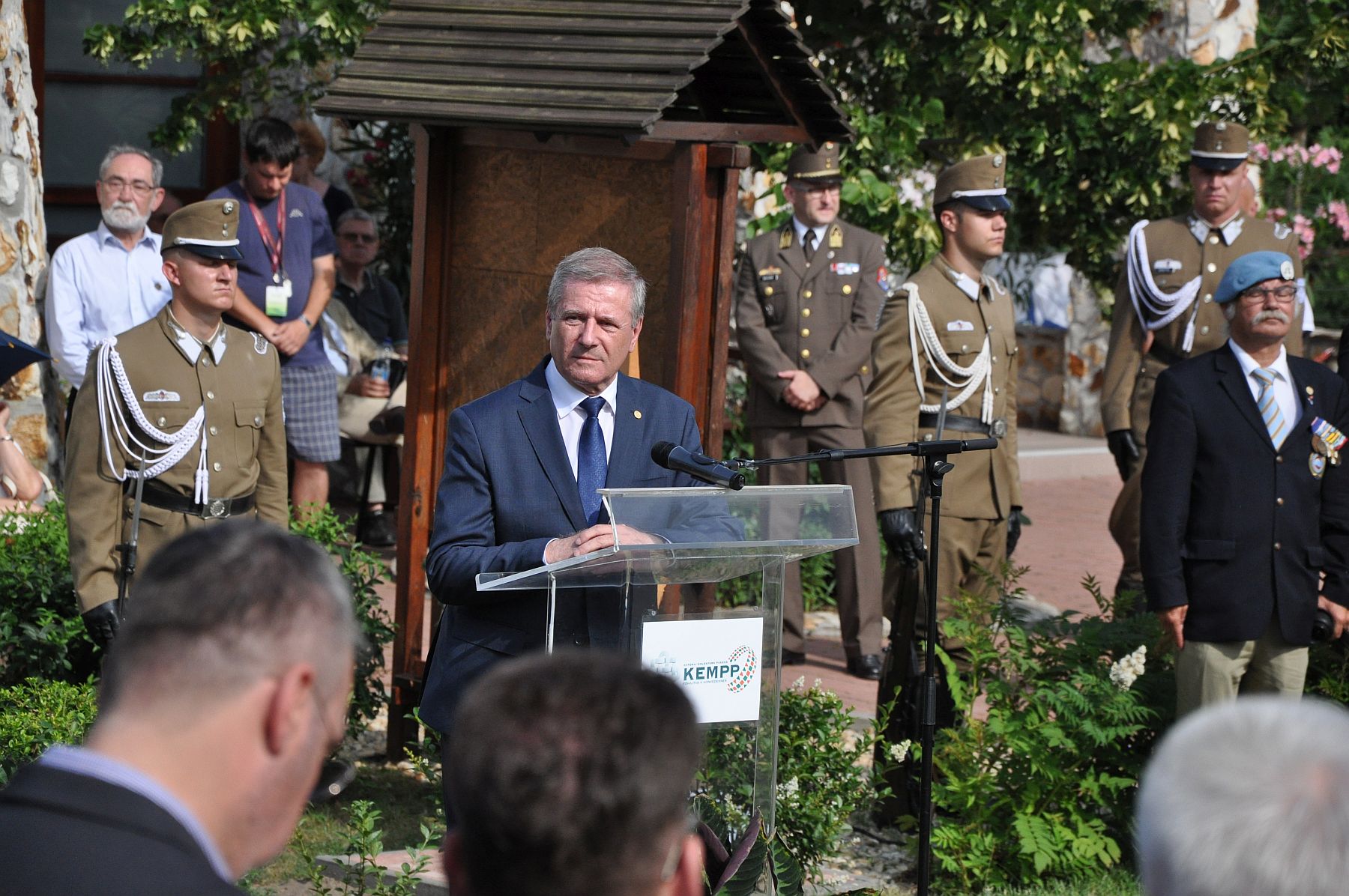 A miniszter beszédében a Békefenntartók emlékművének feliratát idézte, ahol név szerint vannak felsorolva azok a honvédek, akik a béke megteremtéséért áldozták életüket: "Végakaratuk a béke volt"