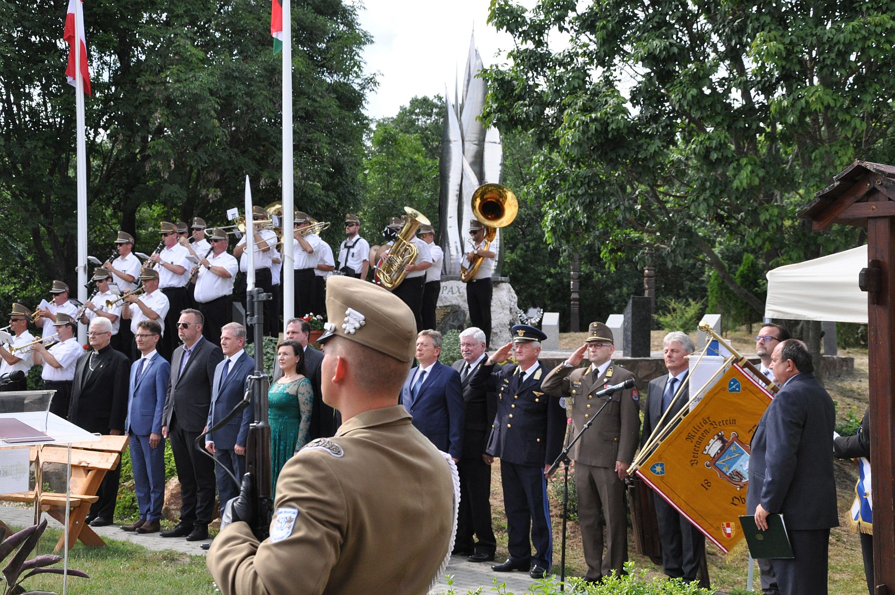 "Azokra a katonákra, békefenntartókra is emlékeztet, akik azért indultak útnak, hogy reményt adjanak az embereknek. Az emlékmű anyagai közül a fa az erő és bátorság, a természeti szépség és öntörvényűségének jelképe, míg a kő a keménységet, állhatatosságot szimbolizálja. A művészet pedig - ez a határok nélküli nyelv - egyesíti ezeket az elemeket." - fogalmazott beszédében Herta Margarete Habsburg Lothringen asszony.