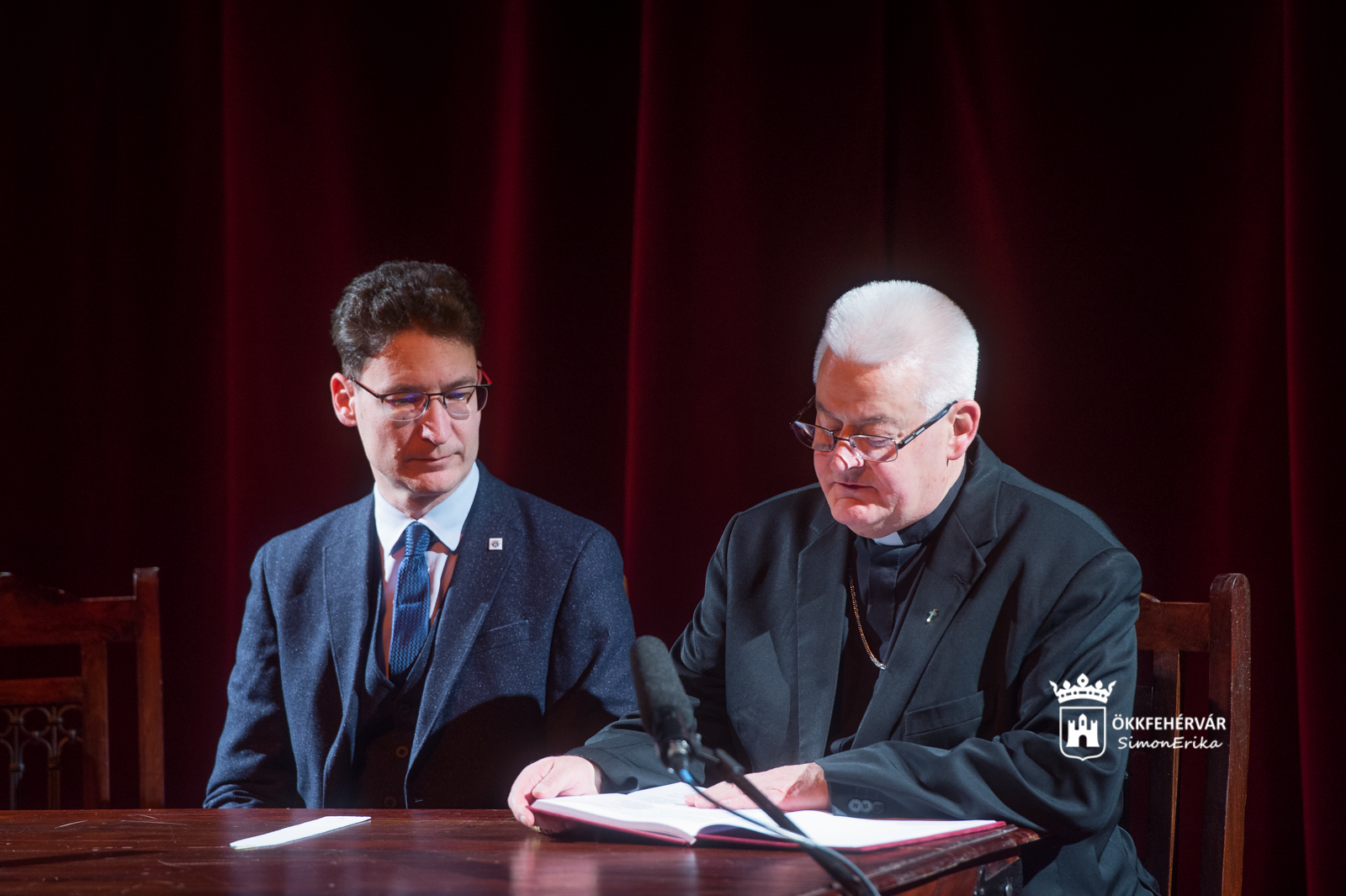 dr. Cser-Palkovics András polgármester, Spányi Antal megyéspüspök, Bencze András evangélikus lelkész és dr. Szikora János színházigazgató közösen gyújtották meg az adventi koszorú első gyertyáját.