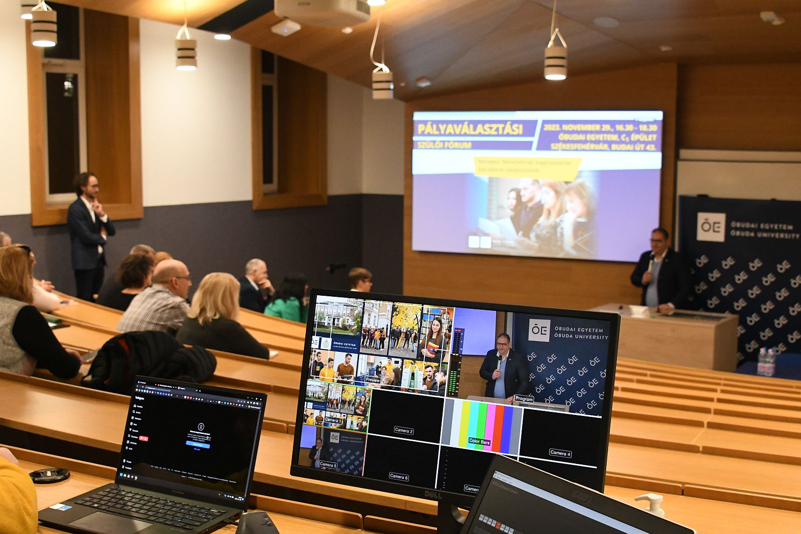 A képzési paletta széleskörű megismertetése, a 2024-es felsőoktatási felvételi eljárás változásai és részletei, továbbá a többletpontok rendszere is szóba került azon a közös fórumon, amit az Óbudai Egyetem Alba Regia Műszaki Kara és a Keleti Károly Gazdasági Kar rendezett az egyetem Budai úti campusán.